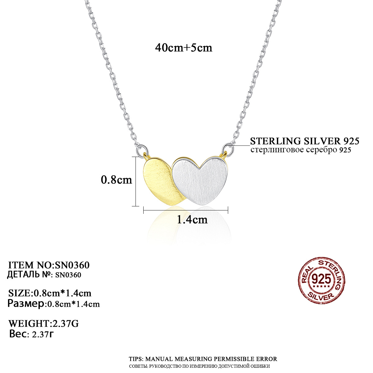 Inima argintie și cea placată cu aur se completează reciproc, simbolizând echilibrul și împlinirea într-o relație. Argintul rodiat adaugă un plus de strălucire și durabilitate colierului, protejându-l împotriva decolorării și conferindu-i un aspect elegant și rafinat.