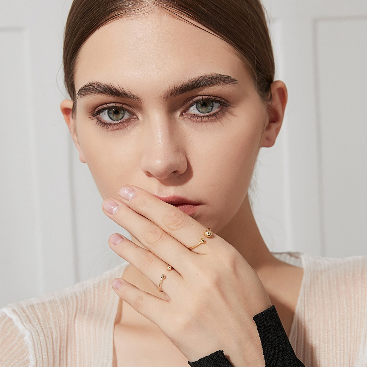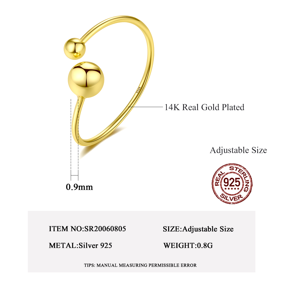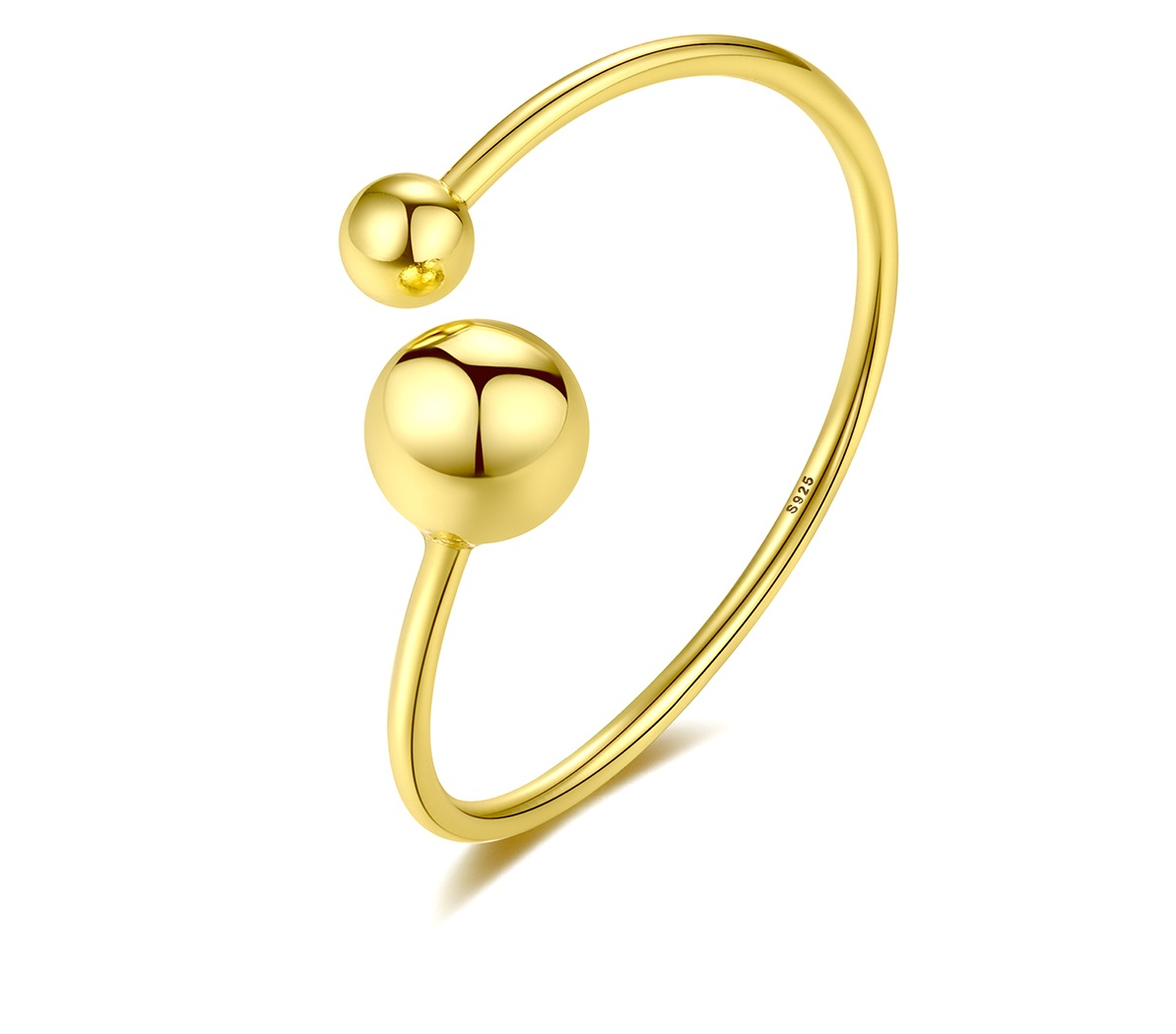 Adaugă un detaliu sofisticat ținutelor tale cu acest inel reglabil din argint 925 placat cu aur. Decorat cu două bile elegante, acest inel minimalist oferă un look modern și rafinat. Perfect pentru purtare zilnică sau pentru ocazii speciale.