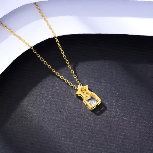 Acest colier delicat din argint 925 placat cu aur este alegerea perfectă pentru un look rafinat și feminin. Designul său modern, accentuat de elemente cubice strălucitoare, adaugă un plus de eleganță și luminozitate oricărei ținute.