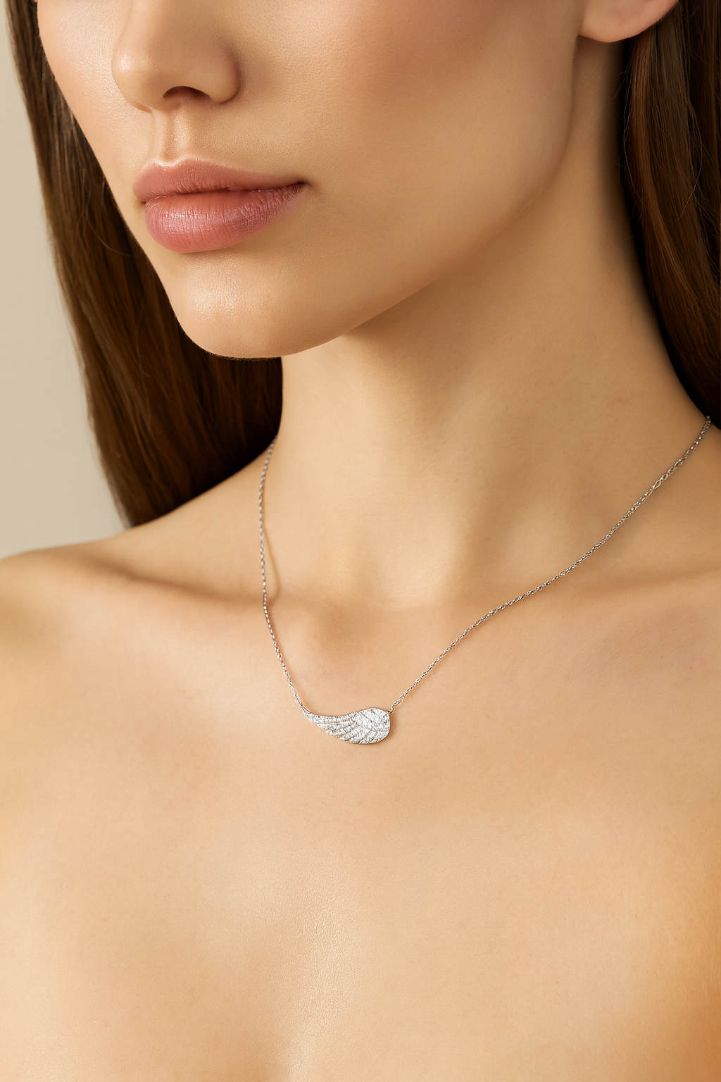 Colierul din argint cu pandantiv aripă se prinde cu ajutorul unei delicate verigi, iar lungimea sa poate fi reglată pentru a se adapta perfect stilului și dorințelor tale.