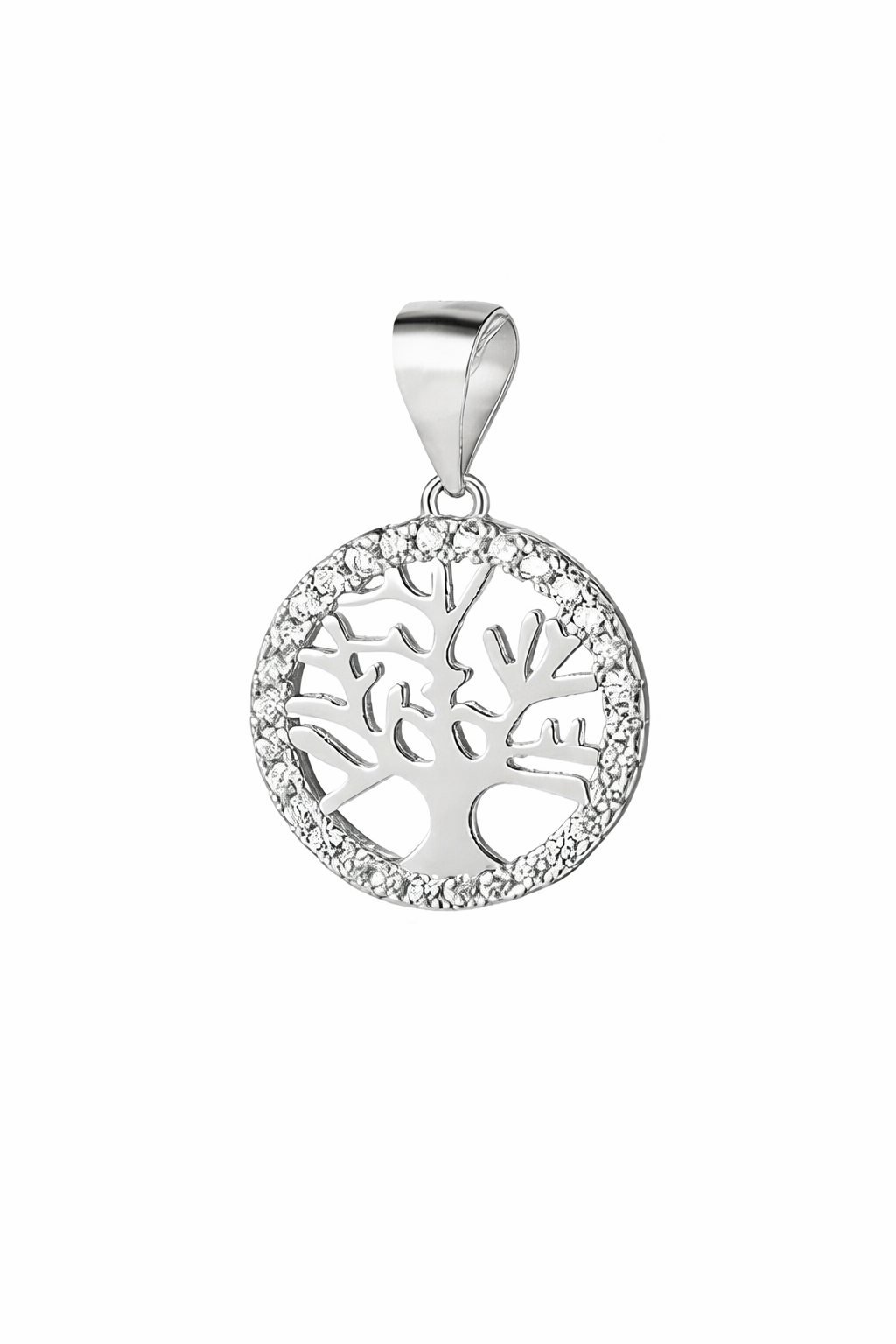 Pandantiv realizat din argint 925 rodiat, sub forma de Copacul Vietii, decorat cu zirconii translucide. Acest simbol este unul cunoscut inca din cele mai vechi timpuri, prezent in numeroase culturi. El semnifica conexiunea cu stramosii nostri, cu familia si continuitatea prin generatii vechi si noi. De asemenea, semnifica cresterea personala, dezvoltarea intr-o persoana unica si frumoasa si forta interioara, rezistenta in fata intemperiilor, intocmai ca si copacul ce rezista cu stoicism in toate anotimpurile.